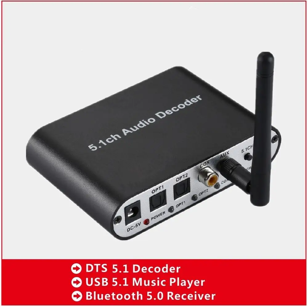 Check Price 5.1CH Audio Decoder Bluetooth 5.0 Reciever Wireless Audio Adapter Optical Coaxial AUX USB2.0 DAC DT on Sale as cheap as US $32.68